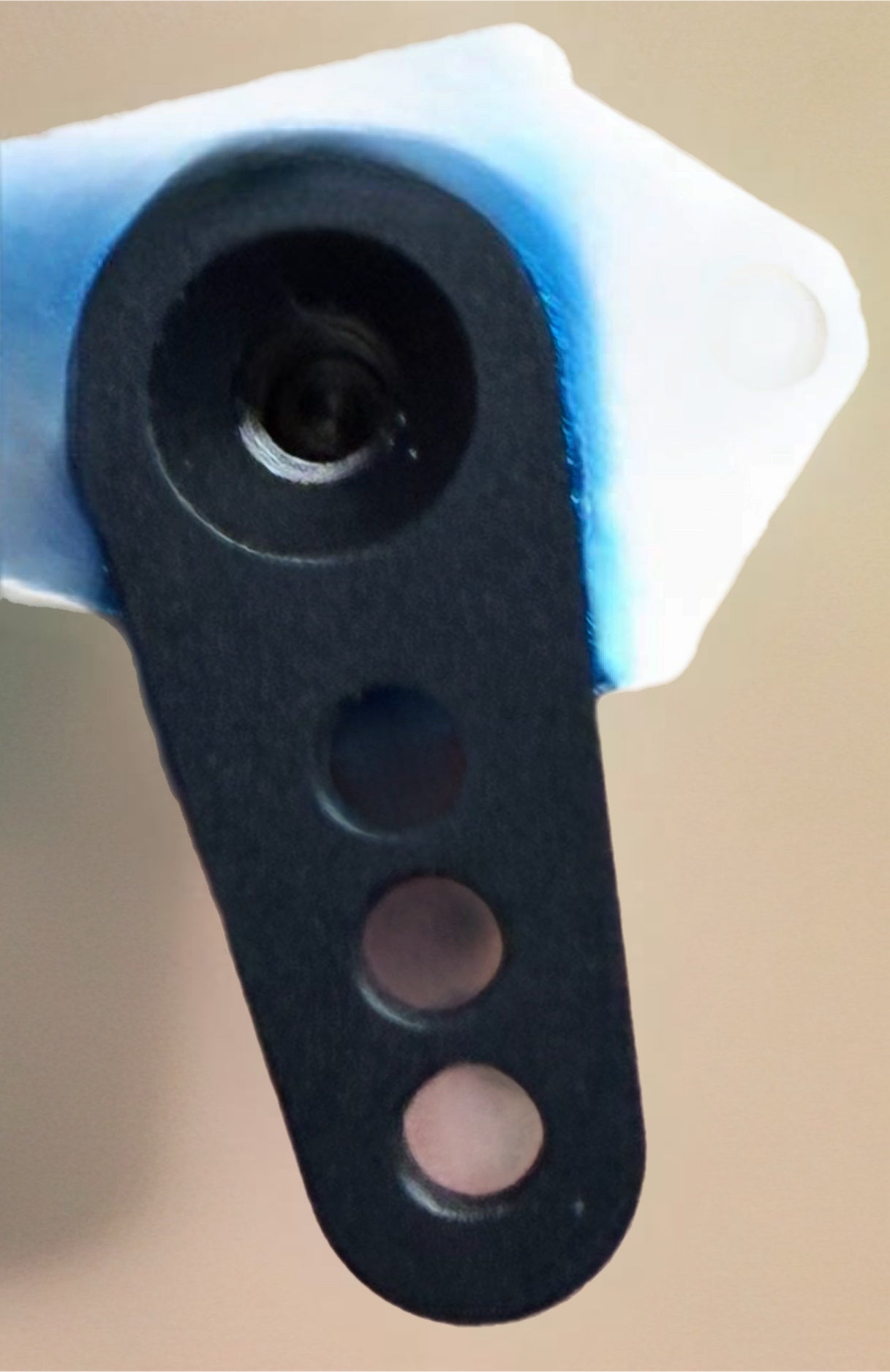 BKTT 1/18th scale servo horn in black, this is a 12mm Length horn with M2.5mm steering holes and is 25-5 spline.